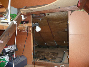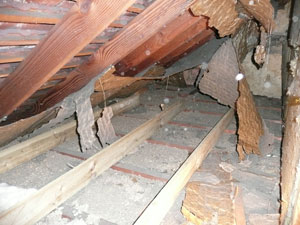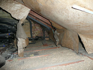 The roof had been lined on the underside of the rafters with a building paper that has long since become brittle and broken. Also, the tanks and pipework were in the 'cold' spaces and, therefore, vulnerable.