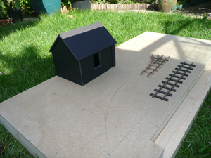 ![]() However, when the office was placed next to it, doubts arose as to its suitability. It took up more of the road area than envisaged and would need to be pushed well back into the fiddleyard area to allow the yard to be developed as planned. After further thought, something like a garden shed seemed more appropriate - hang on....... Tucked away in the garage were two coaches that I'd never got around to finishing. Would one of them work?