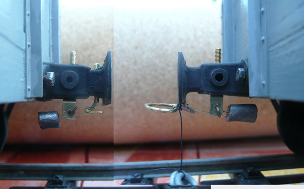 As you can see, I'm no engineer, so the construction is basically very simple. There's a lot of tweaking required to get all of the elements just right, but I'm very pleased with the first attempt. The washers on a string will be replaced with a soft-iron wire dropper (or chain), the loop wire could be thinner and all of the coupler parts blackened. Although they are essentially simple, they are still a bit fiddly to make. However, there won't be much stock on BQ and they will make shunting really interesting.