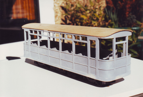 The bodywork was virtually all stripwood and the window framing took quite a lot of work especially as all of the glazing slides into place in slots. The curved ends were also a challenge and were formed from layers of thin ply laminated around a tube.