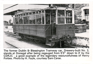 This was an interesting project inspired by two prototypes. The first was a drawing of a Drewery railcar built for a 2'-6" gauge railway in the tropics. It had an interesting layout, but the double skin roof and small shuttered windows were not very attractive. The second was a B&W photo of another Drewery railcar that ran on two different Irish railways (originally on 5'-3" then re-gauged to 3'). I took the interior and general layout of the former and applied the outside of the latter.